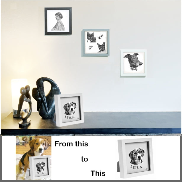 Create a lasting memory using your image and words. Permanent etched onto a white tile and mounted into a stylish frame, available in 3 colours.